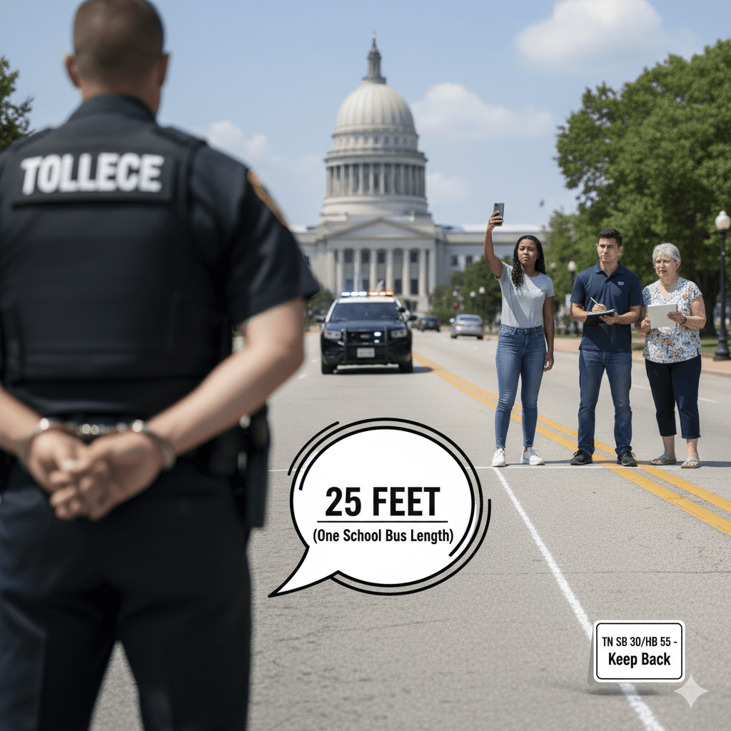 This summer, the Tennessee legislature signed a bill that introduced a new host of misdemeanors into law. SB 30/HB 55 was amended once before becoming enforceable law, with a second amendment failing on the House floor, and went into effect on July 1, 2025. One of those misdemeanors has garnered particularly heightened scrutiny – a new provision making it illegal to approach within 25 feet of law enforcement when they are actively carrying out their official duties after being told to stop.